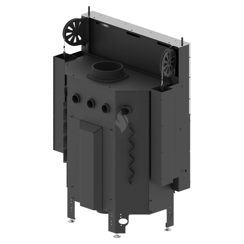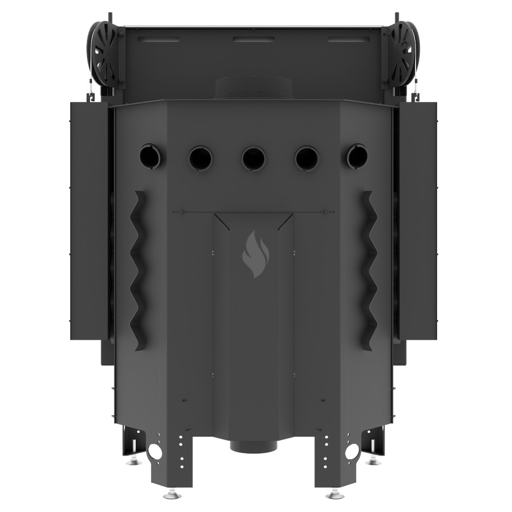 Az ø180 / 200 / 220 / 250 mm-es füstcső biztosítja a kandalló és a kéménycsatorna szoros csatlakozását, biztosítva a megfelelő égést és növelve a hőcsere területét. A hőcsövek növelik a hőcserélési és felhalmozási területet (modelltől függően 3-6 db). Az acél ajtó megnövelt merevségű profilból készült, ami garantálja az ajtó szorosságát és szilárdságát. A hőálló kerámiaüveg (DECOR üveg) akár 800°C-ig ellenáll a működési hőmérsékletnek, és opcionálisan dupla üvegezési rendszerben is elérhető.
