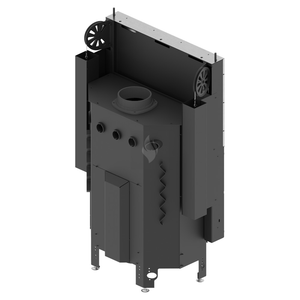 A ø125 / 150 mm-es légbevezető nyílás egy állítható fojtószeleppel simán szabályozza a kandalló belsejében az áramlást. Az állítható lábak biztonságos és stabil elhelyezést biztosítanak a kandallóbetét számára. Az opcionálisan +10 cm-es emelési lehetőséggel és +/- 3-5 cm-es beállítási lehetőséggel további rugalmasságot kínálnak.