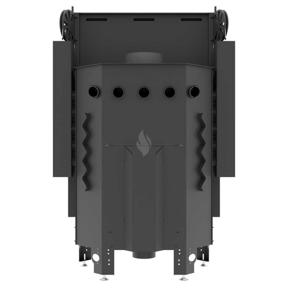 Az ø180 / 200 / 220 / 250 mm-es füstcső biztosítja a kandalló és a kéménycsatorna szoros csatlakozását, biztosítva a megfelelő égést és növelve a hőcsere területét. A hőcsövek növelik a hőcserélési és felhalmozási területet (modelltől függően 3-6 db). Az acél ajtó megnövelt merevségű profilból készült, ami garantálja az ajtó szorosságát és szilárdságát. A hőálló kerámiaüveg (DECOR üveg) akár 800°C-ig ellenáll a működési hőmérsékletnek, és opcionálisan dupla üvegezési rendszerben is elérhető.