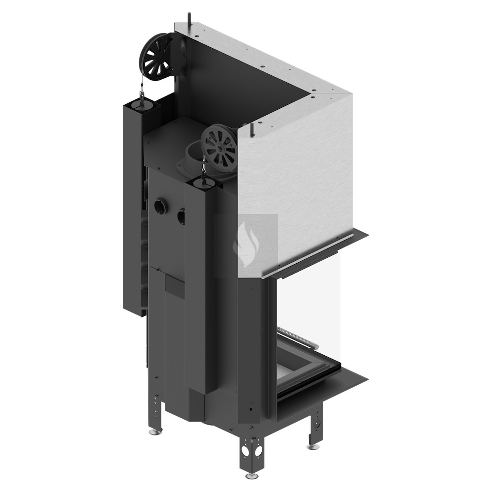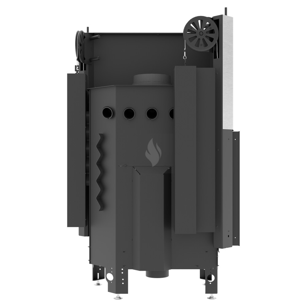 Az ø180 / 200 / 220 / 250 mm-es füstcső biztosítja a kandalló és a kéménycsatorna szoros csatlakozását, biztosítva a megfelelő égést és növelve a hőcsere területét. A hőcsövek növelik a hőcserélési és felhalmozási területet (modelltől függően 3-6 db). Az acél ajtó megnövelt merevségű profilból készült, ami garantálja az ajtó szorosságát és szilárdságát. A hőálló kerámiaüveg (DECOR üveg) akár 800°C-ig ellenáll a működési hőmérsékletnek, és opcionálisan dupla üvegezési rendszerben is elérhető.