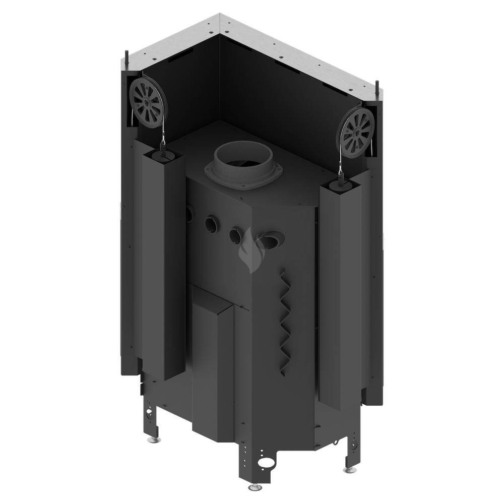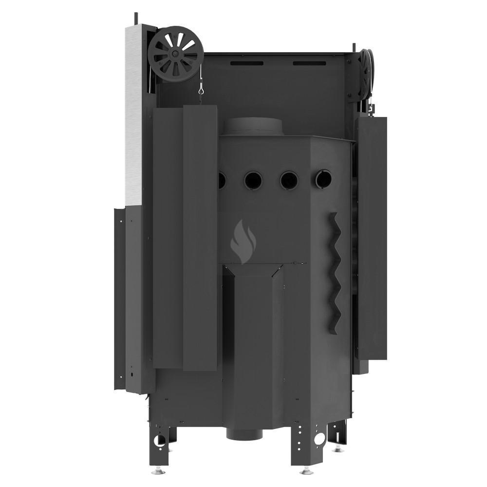 Az ø180 / 200 / 220 / 250 mm-es füstcső biztosítja a kandalló és a kéménycsatorna szoros csatlakozását, biztosítva a megfelelő égést és növelve a hőcsere területét. A hőcsövek növelik a hőcserélési és felhalmozási területet (modelltől függően 3-6 db). Az acél ajtó megnövelt merevségű profilból készült, ami garantálja az ajtó szorosságát és szilárdságát. A hőálló kerámiaüveg (DECOR üveg) akár 800°C-ig ellenáll a működési hőmérsékletnek, és opcionálisan dupla üvegezési rendszerben is elérhető.