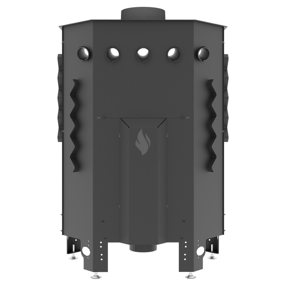 Az ø180 / 200 / 220 / 250 mm-es füstcső biztosítja a kandalló és a kéménycsatorna szoros csatlakozását, biztosítva a megfelelő égést és növelve a hőcsere területét. A hőcsövek növelik a hőcserélési és felhalmozási területet (modelltől függően 3-6 db). Az acél ajtó megnövelt merevségű profilból készült, ami garantálja az ajtó szorosságát és szilárdságát. A hőálló kerámiaüveg (DECOR üveg) akár 800°C-ig ellenáll a működési hőmérsékletnek, és opcionálisan dupla üvegezési rendszerben is elérhető.
