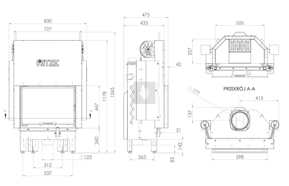 HITZE ALBERO AL9G-H-D Liftes Légfűtéses kandallóbetét