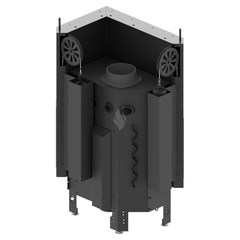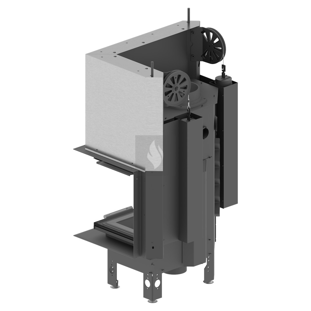 Az ø180 / 200 / 220 / 250 mm-es füstcső biztosítja a kandalló és a kéménycsatorna szoros csatlakozását, biztosítva a megfelelő égést és növelve a hőcsere területét. A hőcsövek növelik a hőcserélési és felhalmozási területet (modelltől függően 3-6 db). Az acél ajtó megnövelt merevségű profilból készült, ami garantálja az ajtó szorosságát és szilárdságát. A hőálló kerámiaüveg (DECOR üveg) akár 800°C-ig ellenáll a működési hőmérsékletnek, és opcionálisan dupla üvegezési rendszerben is elérhető.