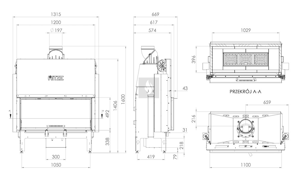 HITZE ARDENTE ARD105x43-G Liftes Légfűtéses kandallóbetét