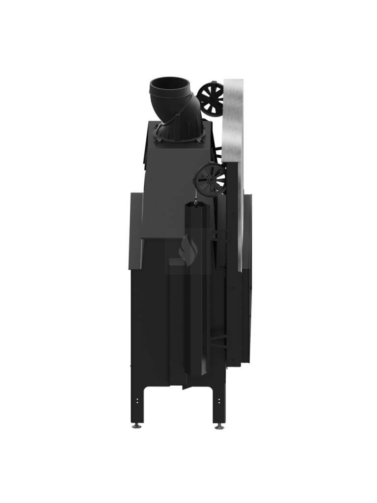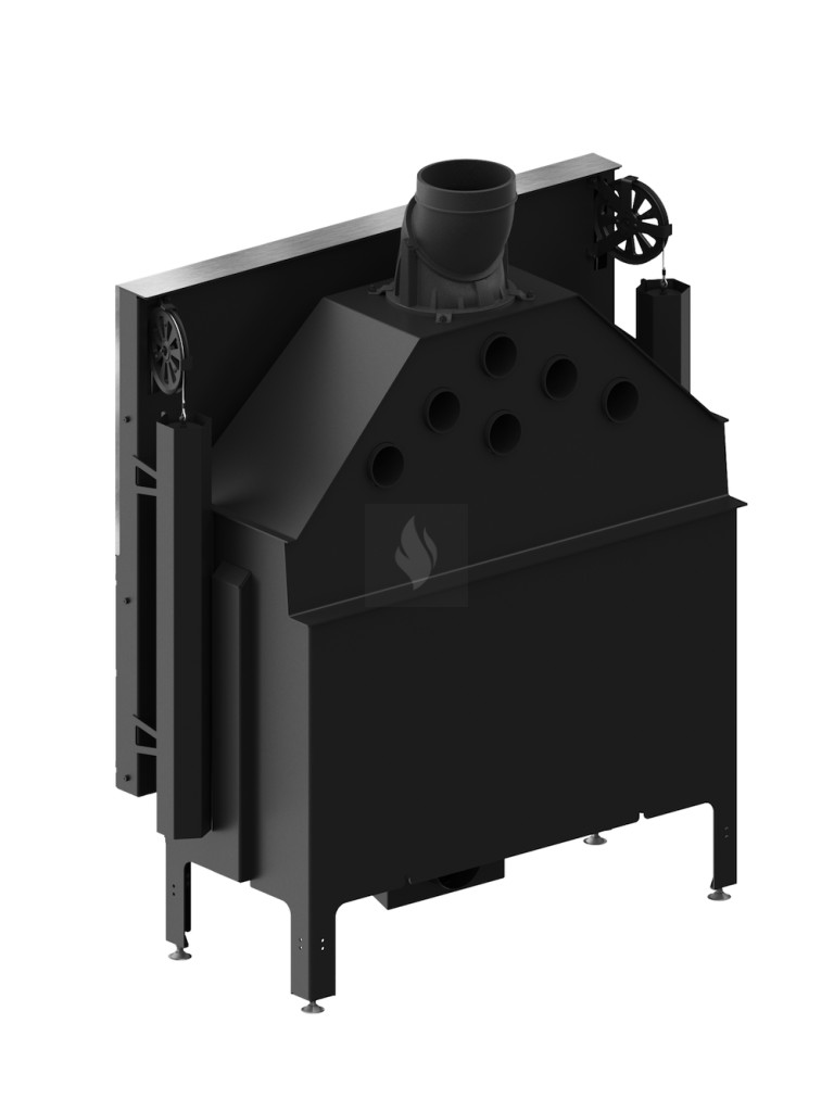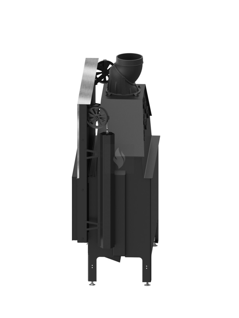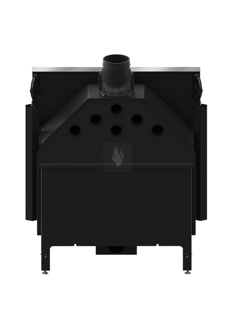 Az öntöttvas füstcső, amely ø200 mm-es és 360°-ban állítható, garantálja a kandalló és a kéménycsatorna szoros csatlakozását, biztosítva a megfelelő égést. Két kerámia deflektor hosszabb égést tesz lehetővé, meghosszabbítva a füstgáz útját és optimalizálva az égési folyamatot. A hőcserélő csövek (három darab) növelik a hőcserélési és felhalmozási területet. A masszív acél test 30%-kal nagyobb súlyú, és a fontos elemek 5 mm vastag P265GH kazánlemezből készülnek.