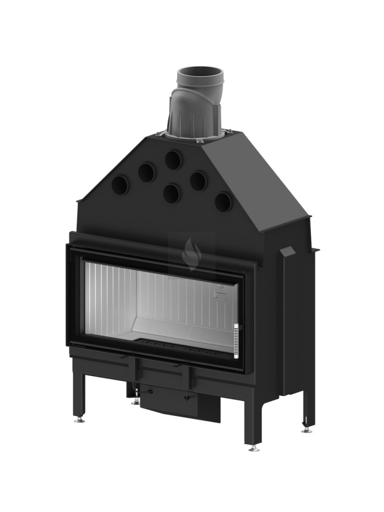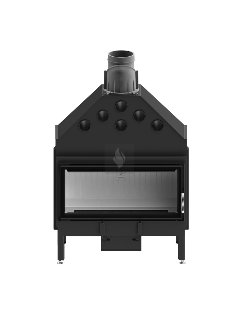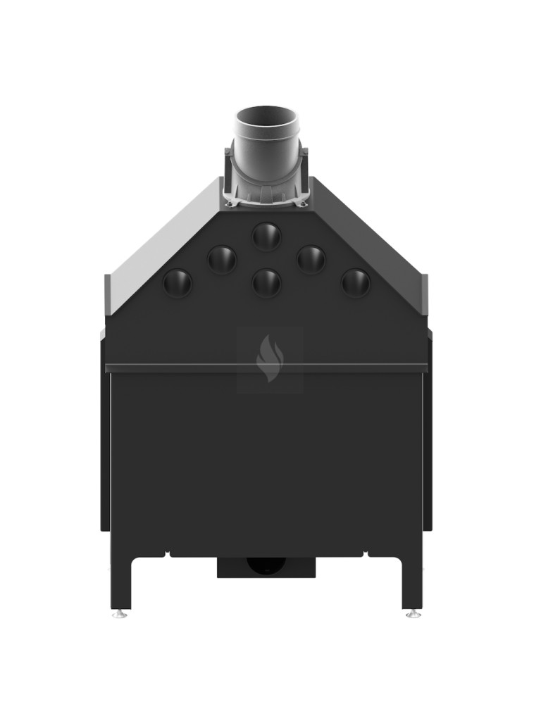 Az öntöttvas füstcső, amely ø200 mm-es és 360°-ban állítható, garantálja a kandalló és a kéménycsatorna szoros csatlakozását, biztosítva a megfelelő égést. Két kerámia deflektor hosszabb égést tesz lehetővé, meghosszabbítva a füstgáz útját és optimalizálva az égési folyamatot. A hőcserélő csövek (három darab) növelik a hőcserélési és felhalmozási területet. A masszív acél test 30%-kal nagyobb súlyú, és a fontos elemek 5 mm vastag P265GH kazánlemezből készülnek.
