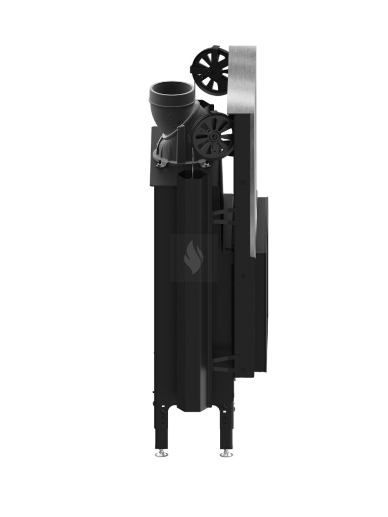 Az integrált, négy szintű fojtószelep ø125 mm-es beömlővel szabályozza az elsődleges és másodlagos levegő áramlását. A rostély nélküli égéstér kényelmes tisztítást tesz lehetővé egy hamuporszívóval. Az EASY UP állítható lábak biztonságos és stabil elhelyezést biztosítanak a kandallóbetét számára, és finoman szabályozhatók 4 cm-es tartományban, lépésenként 0-4, 5-9, 13,5 cm-ig. Az EASY START rendszer pedig független levegőszabályozással segíti a tűzgyújtást.