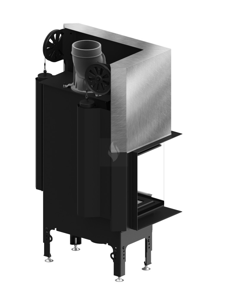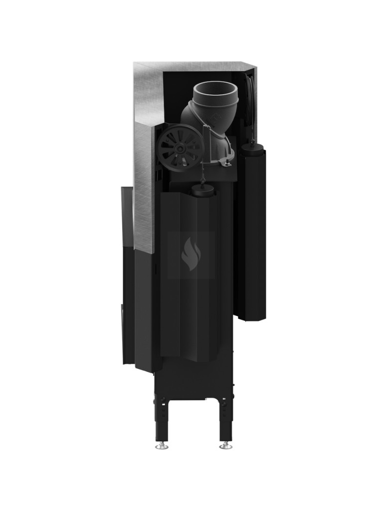 Az integrált, négy szintű fojtószelep ø125 mm-es beömlővel szabályozza az elsődleges és másodlagos levegő áramlását. A rostély nélküli égéstér kényelmes tisztítást tesz lehetővé egy hamuporszívóval. Az EASY UP állítható lábak biztonságos és stabil elhelyezést biztosítanak a kandallóbetét számára, és finoman szabályozhatók 4 cm-es tartományban, lépésenként 0-4, 5-9, 13,5 cm-ig. Az EASY START rendszer pedig független levegőszabályozással segíti a tűzgyújtást.