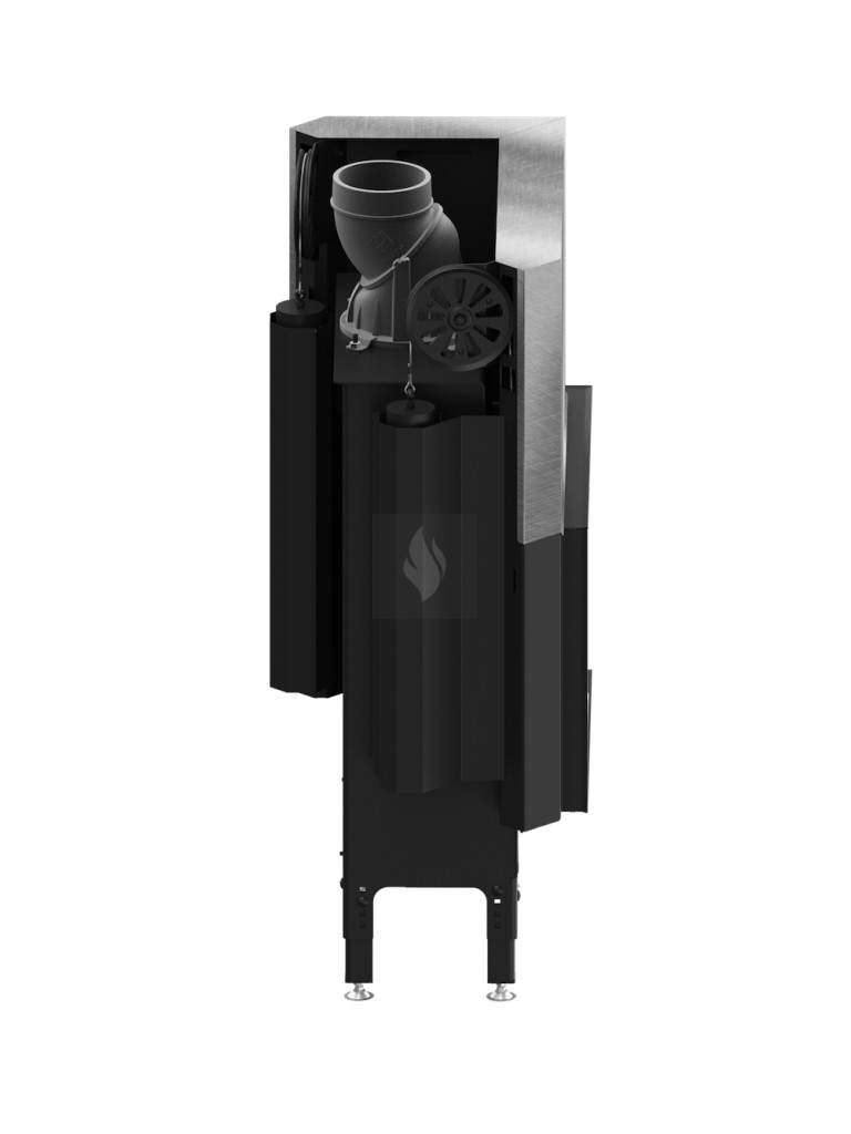 Az integrált, négy szintű fojtószelep ø125 mm-es beömlővel szabályozza az elsődleges és másodlagos levegő áramlását. A rostély nélküli égéstér kényelmes tisztítást tesz lehetővé egy hamuporszívóval. Az EASY UP állítható lábak biztonságos és stabil elhelyezést biztosítanak a kandallóbetét számára, és finoman szabályozhatók 4 cm-es tartományban, lépésenként 0-4, 5-9, 13,5 cm-ig. Az EASY START rendszer pedig független levegőszabályozással segíti a tűzgyújtást.