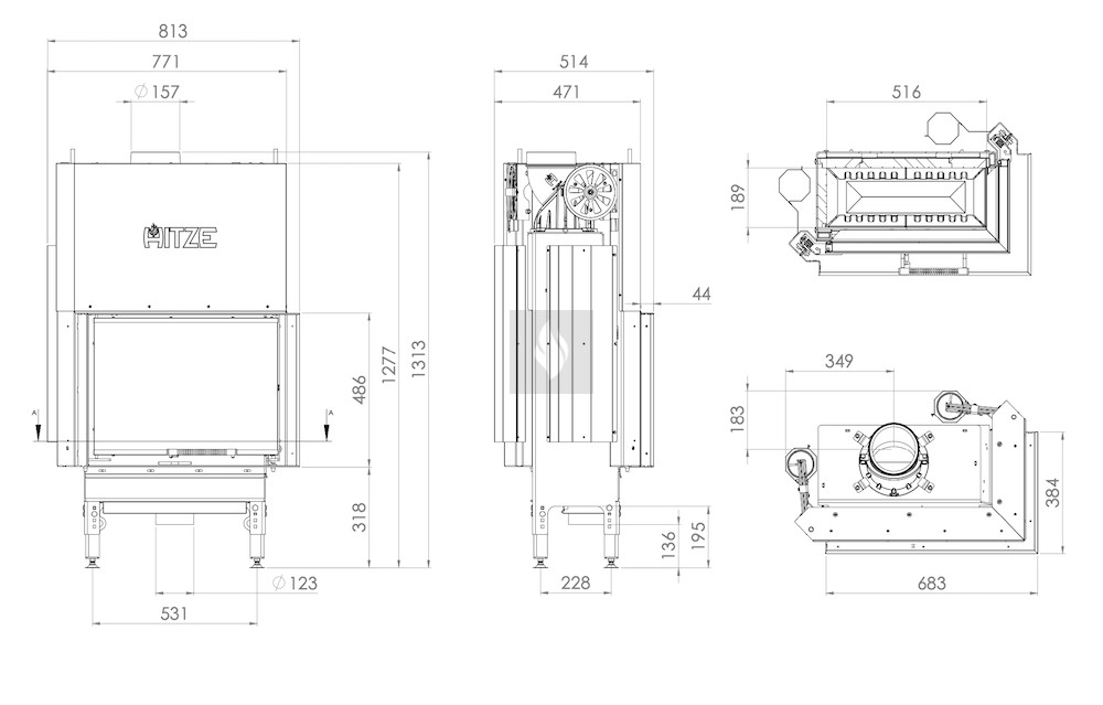 HITZE HST 59x43-RG Liftes Légfűtéses kandallóbetét
