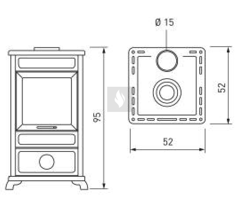 • felső füstkivezetés Ø15 cm,