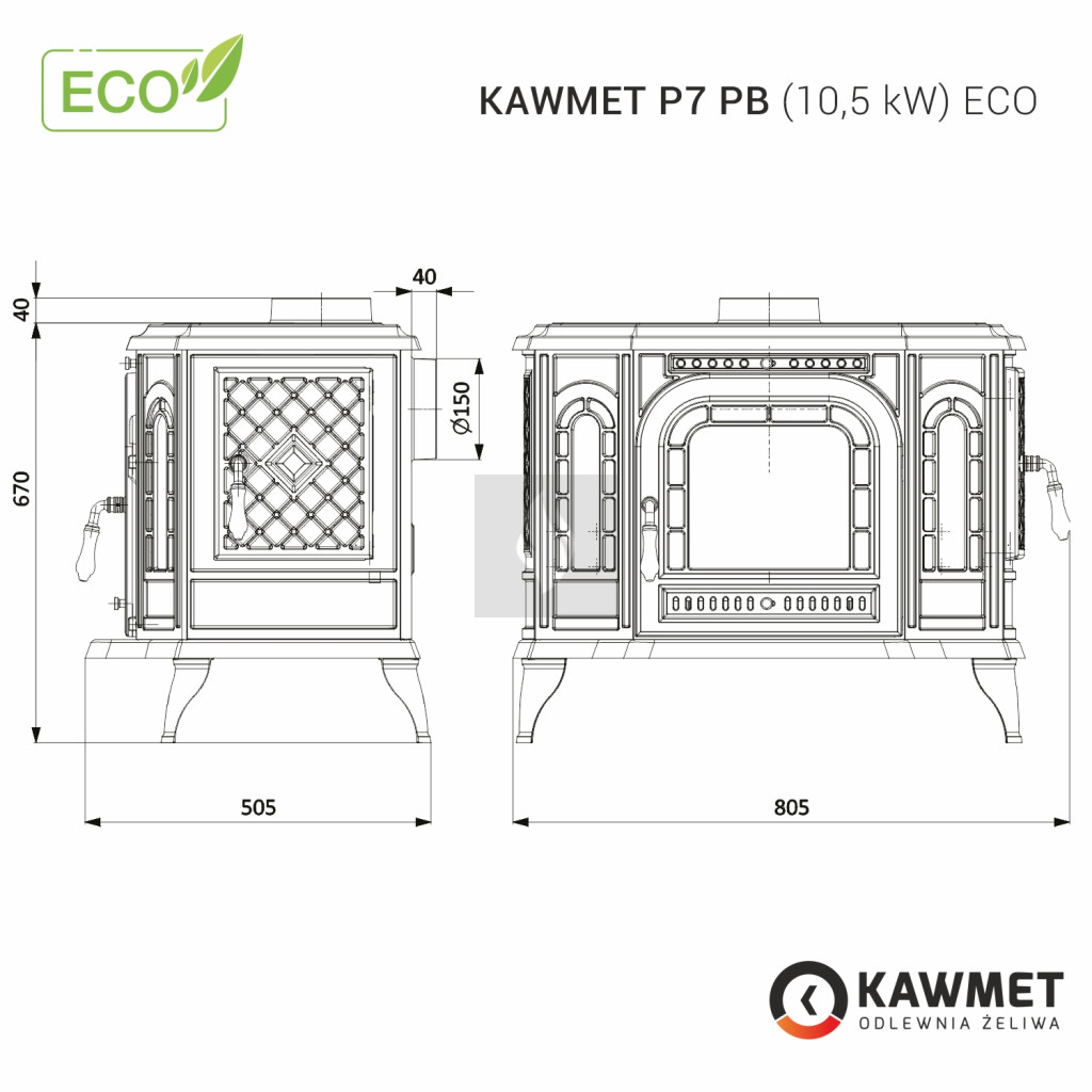 A KAWMET P7 PB (10,5 kW) ECO öntvény kandallókályha egy klasszikus öntvény kandallókályha az ECO sorozatból. Ennek a KAWMET öntvény kandallókályhának számos előnye van, amelyek közül a legfontosabb a környezetbarát tervezési követelményeknek való megfelelés, a tökéletes kialakítás és a nagy teljesítmény.