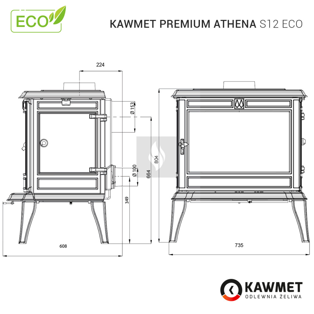 A KAWMET Premium ATHENA S12 ECO öntvény kandallókályha egy klasszikus öntvény kandallókályha a PREMIUM sorozatból. Ennek a KAWMET öntvény kandallókályhának számos előnye van, amelyek közül a legfontosabb a környezetbarát tervezési követelményeknek való megfelelés, a tökéletes kialakítás és a nagy teljesítmény.