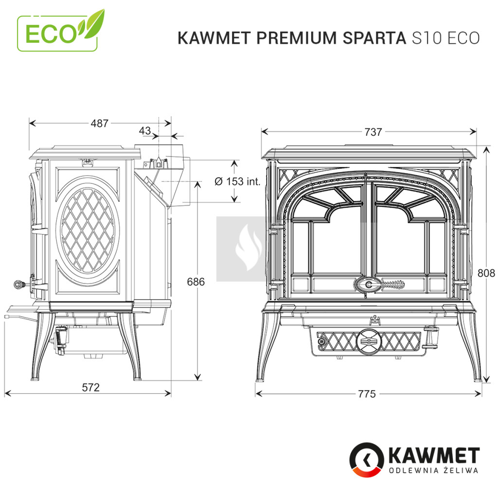 A KAWMET Premium SPARTA S10 ECO öntvény kandallókályha egy klasszikus öntvény kandallókályha a PREMIUM sorozatból. Ennek a KAWMET öntvény kandallókályhának számos előnye van, amelyek közül a legfontosabb a környezetbarát tervezési követelményeknek való megfelelés, a tökéletes kialakítás és a nagy teljesítmény.