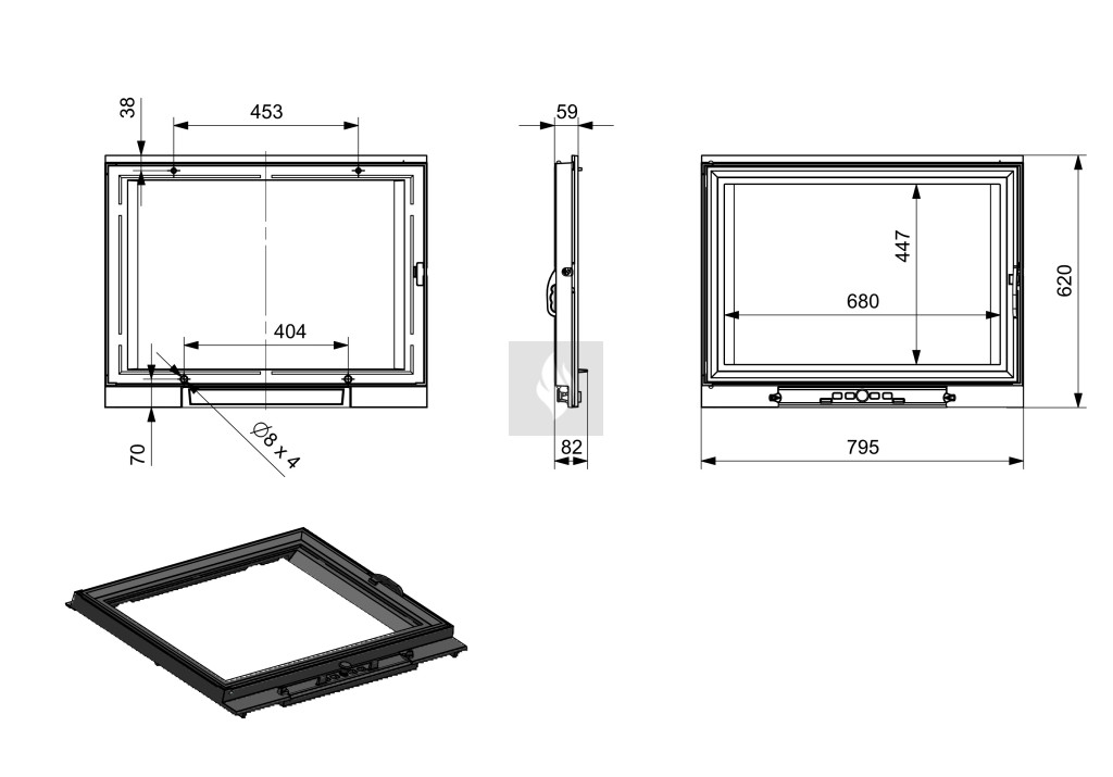 Öntöttvas kandallóajtó KAWMET W8 795x620