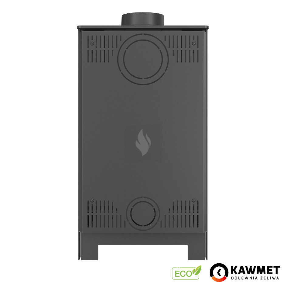 A füstcső felül vagy hátul is csatlakoztatható, így rugalmasan illeszthető a kéményrendszerhez.