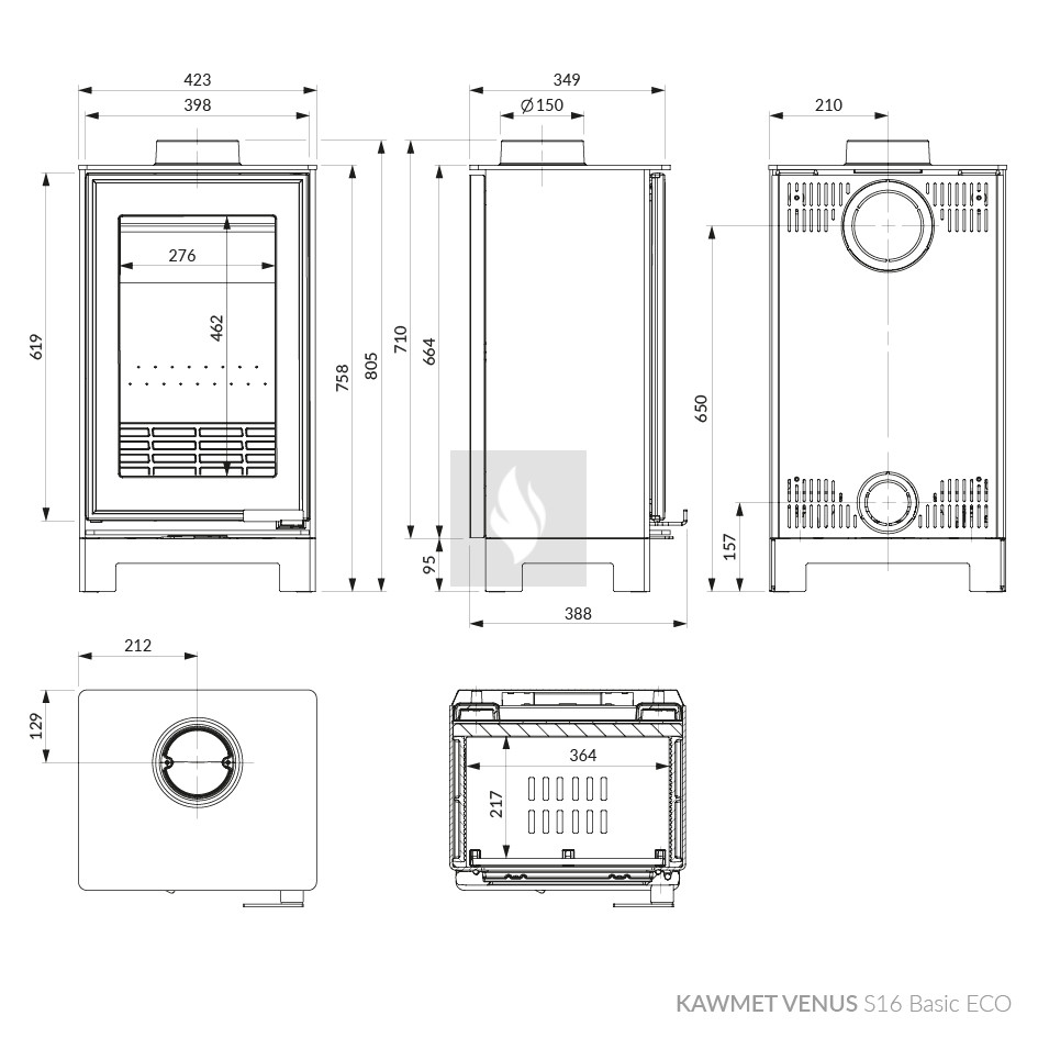 Kawmet VENUS S16 Decor ECO dekor üveges kandallókályha