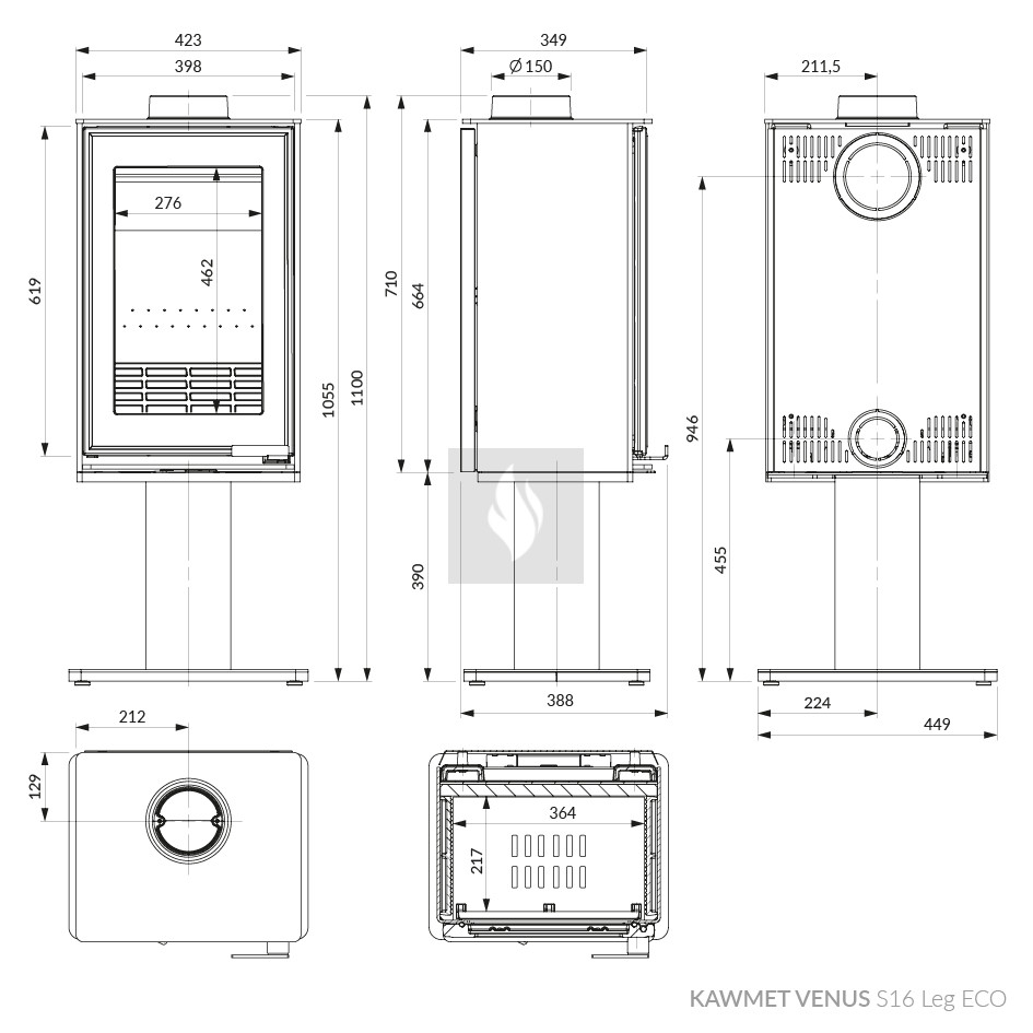Kawmet VENUS S16 Decor ECO dekor üveges lábon álló kandallókályha