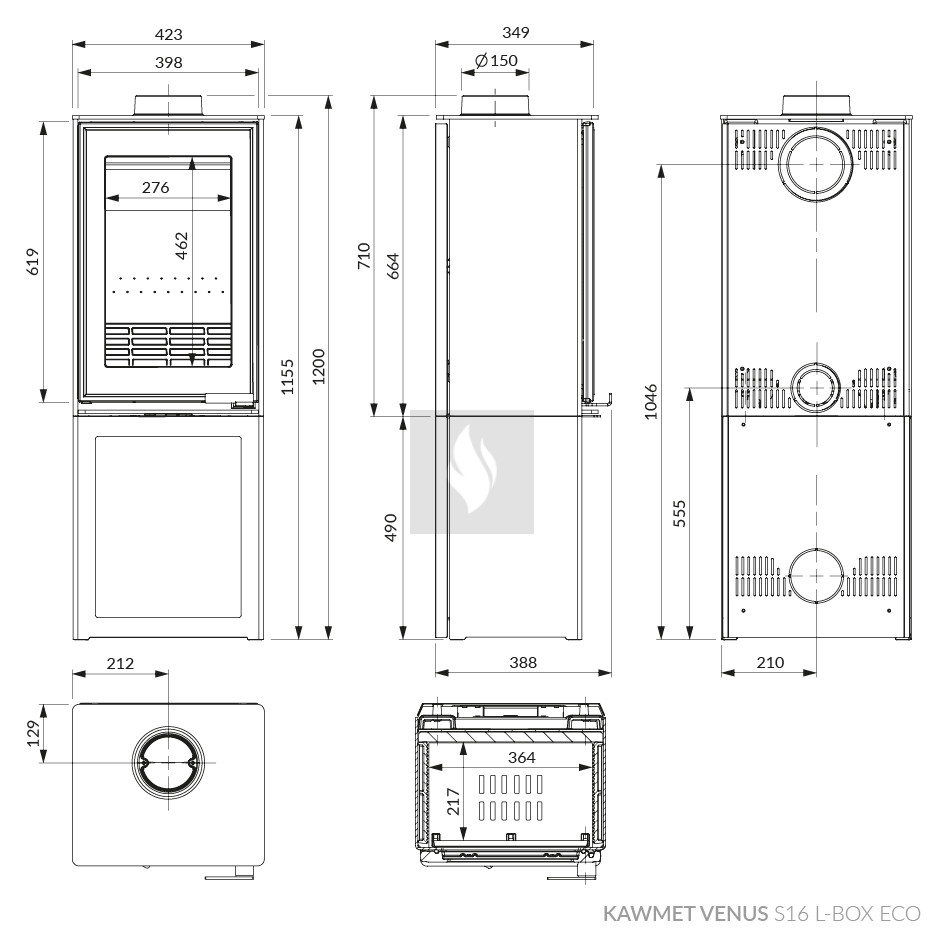 Kawmet VENUS S16 L-BOX Decor ECO dekor üveges fatárolós kandallókályha