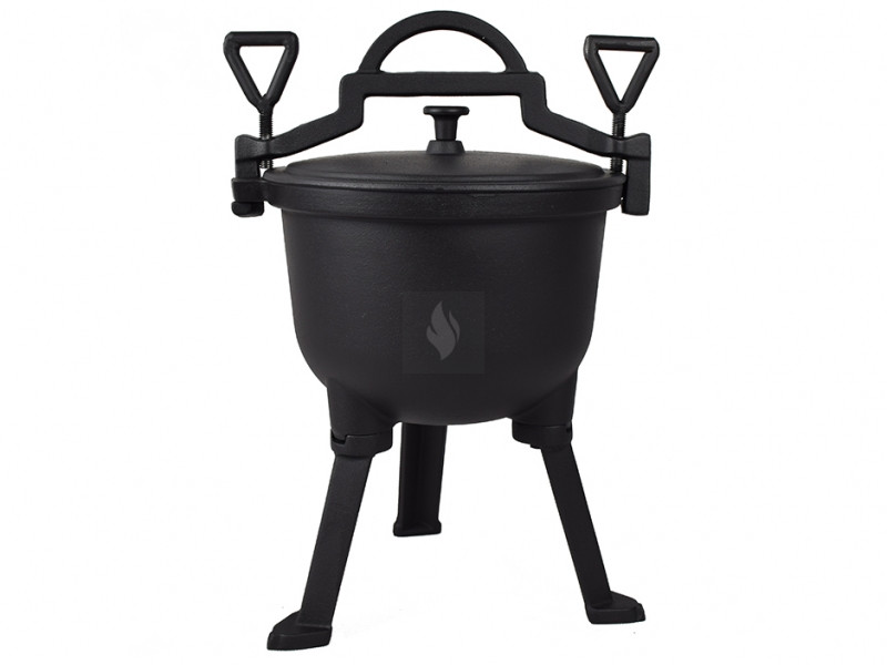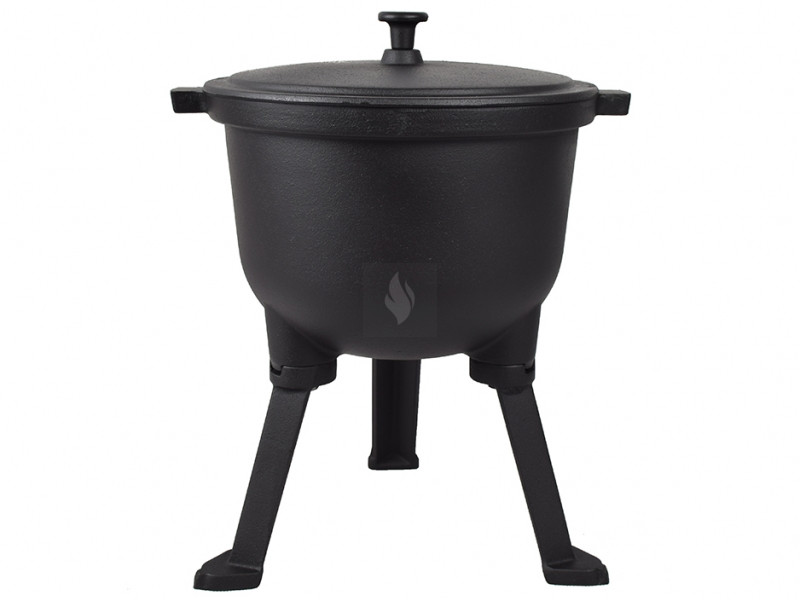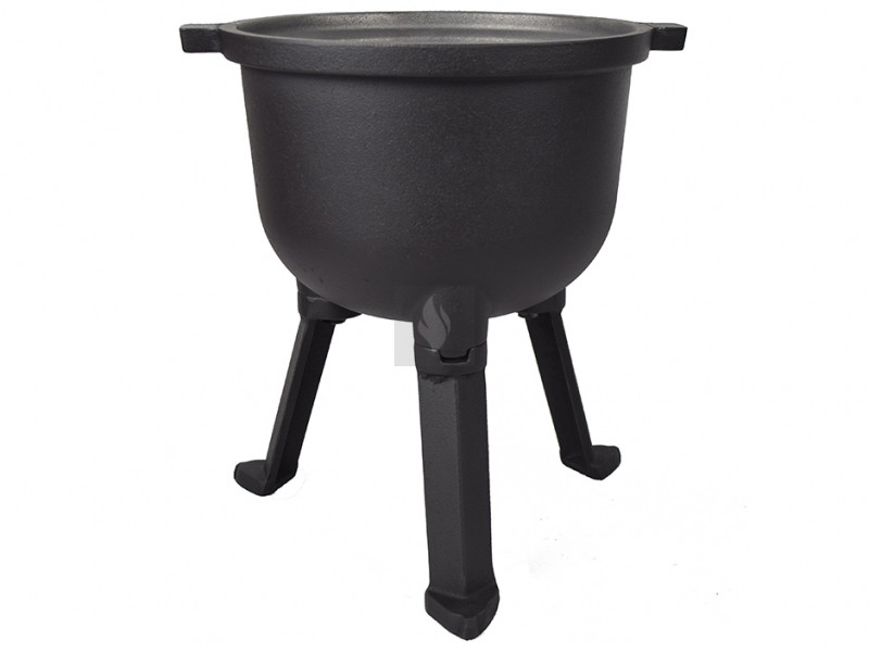 4 literes öntöttvas bogrács 29×29×42 cm külső mérettel, 21 cm belső átmérővel, 17 cm belső mélységgel és 30 cm láb nélküli magassággal. Anyaga öntöttvas, tömege 9 kg.