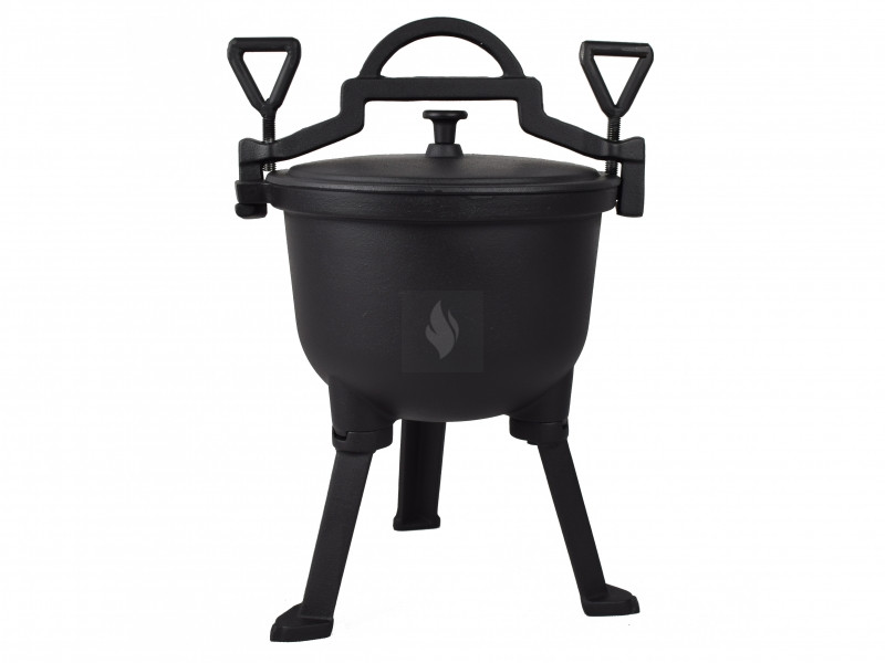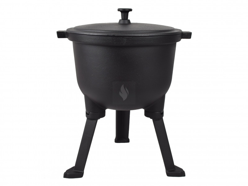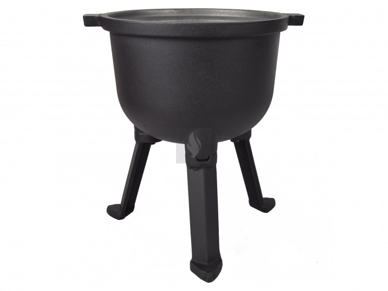 8 literes öntöttvas bogrács 32×37×51 cm mérettel, 28,5 cm belső átmérővel, 21 cm belső mélységgel és 45,5 cm láb nélküli magassággal. Anyaga öntöttvas, tömege 14 kg.