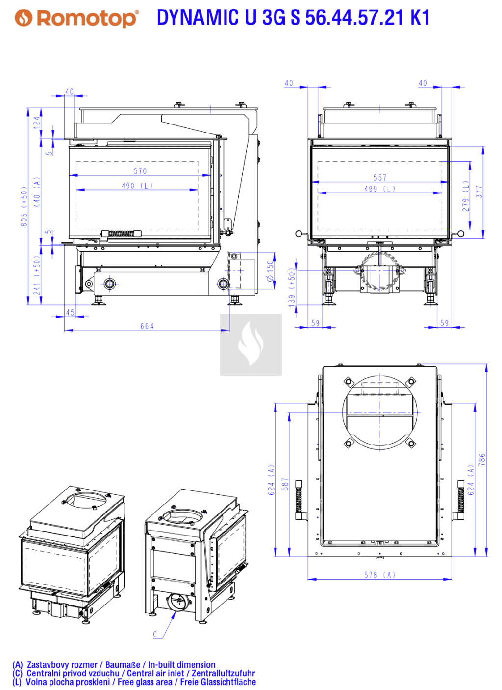 Romotop DYNAMIC U 3G 56.44.57.21 Légfűtéses kandallóbetét K1 kerettel