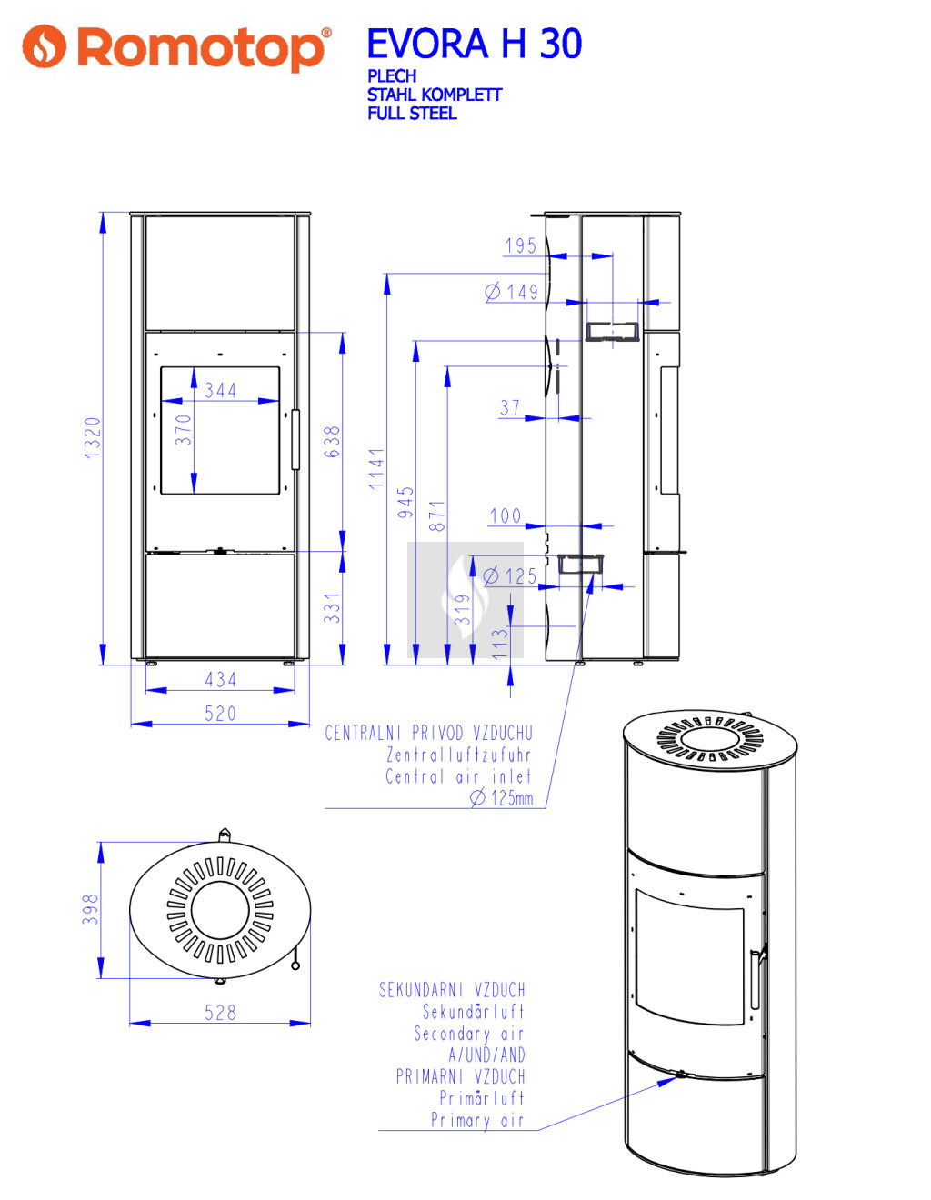Romotop EVORA H 30 lemez Kandallókályha - bővíthető hőtárolóval