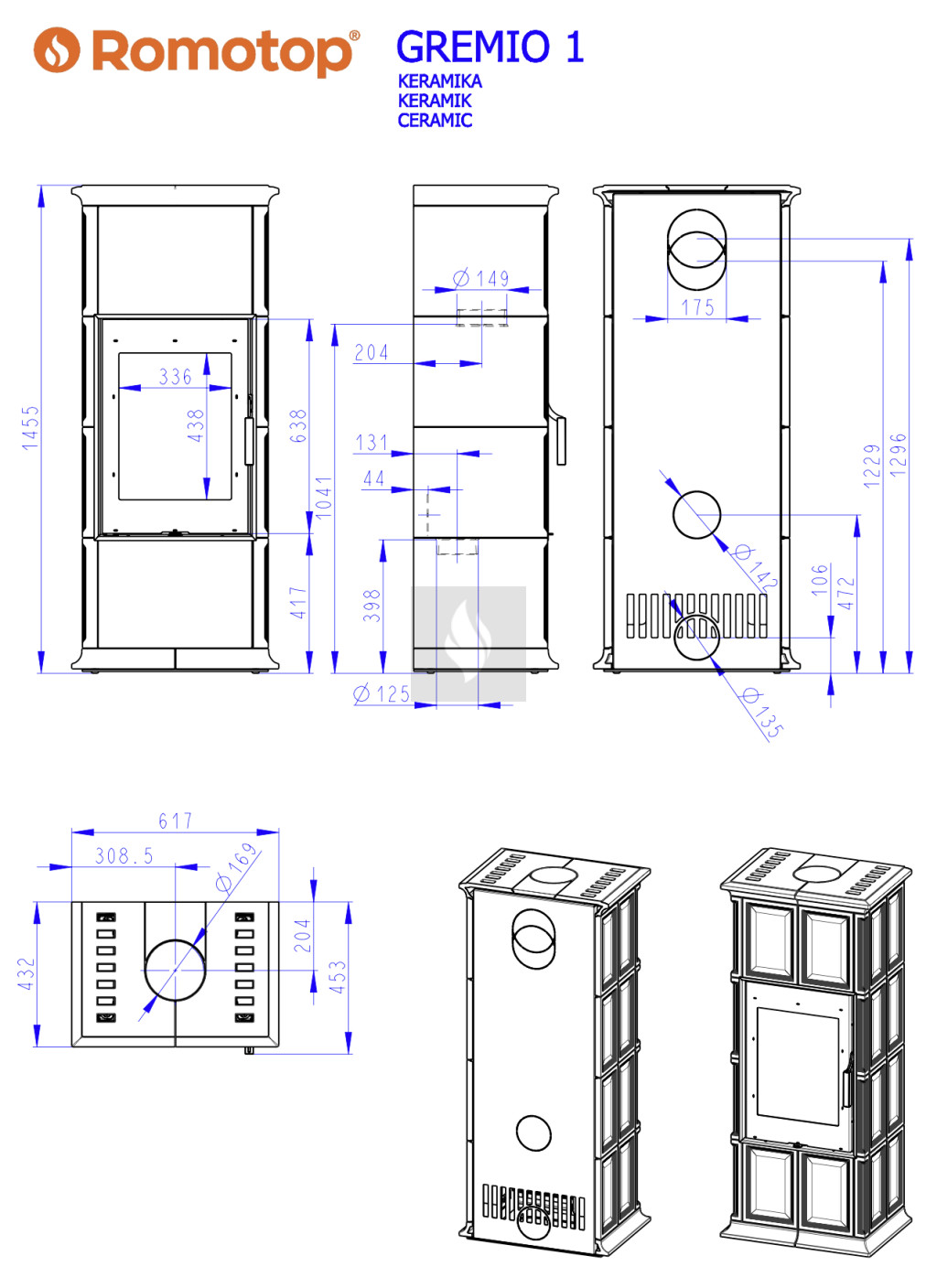 Romotop GREMIO 1 kerámia Kandallókályha - bővíthető hőtárolóval