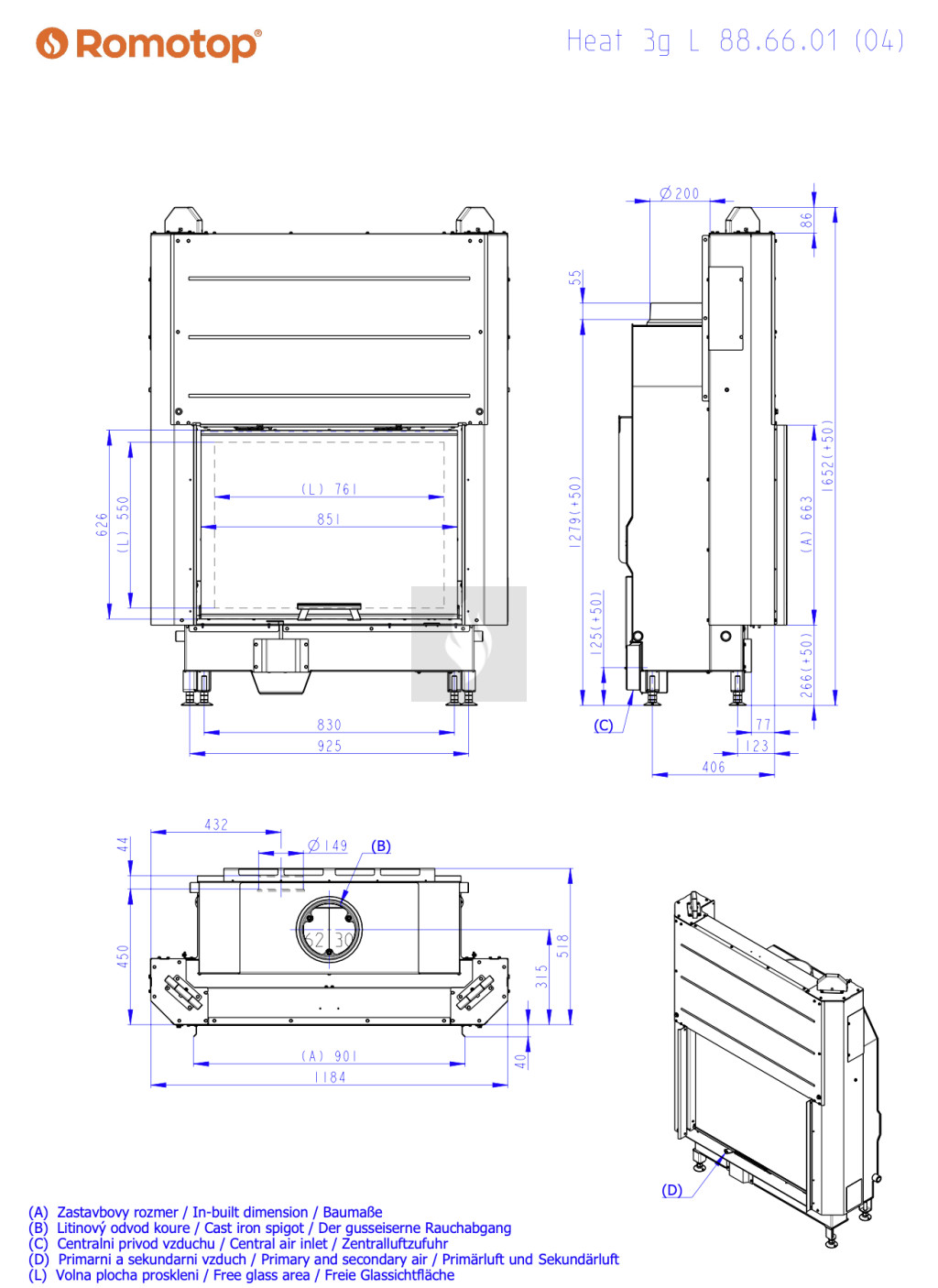 Romotop HEAT 3G L 88.66.04 Légfűtéses kandallóbetét