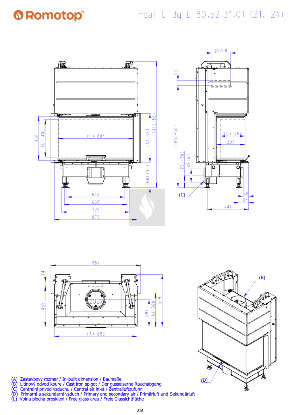 Romotop HEAT C 3G L 80.52.31.24 Légfűtéses kandallóbetét