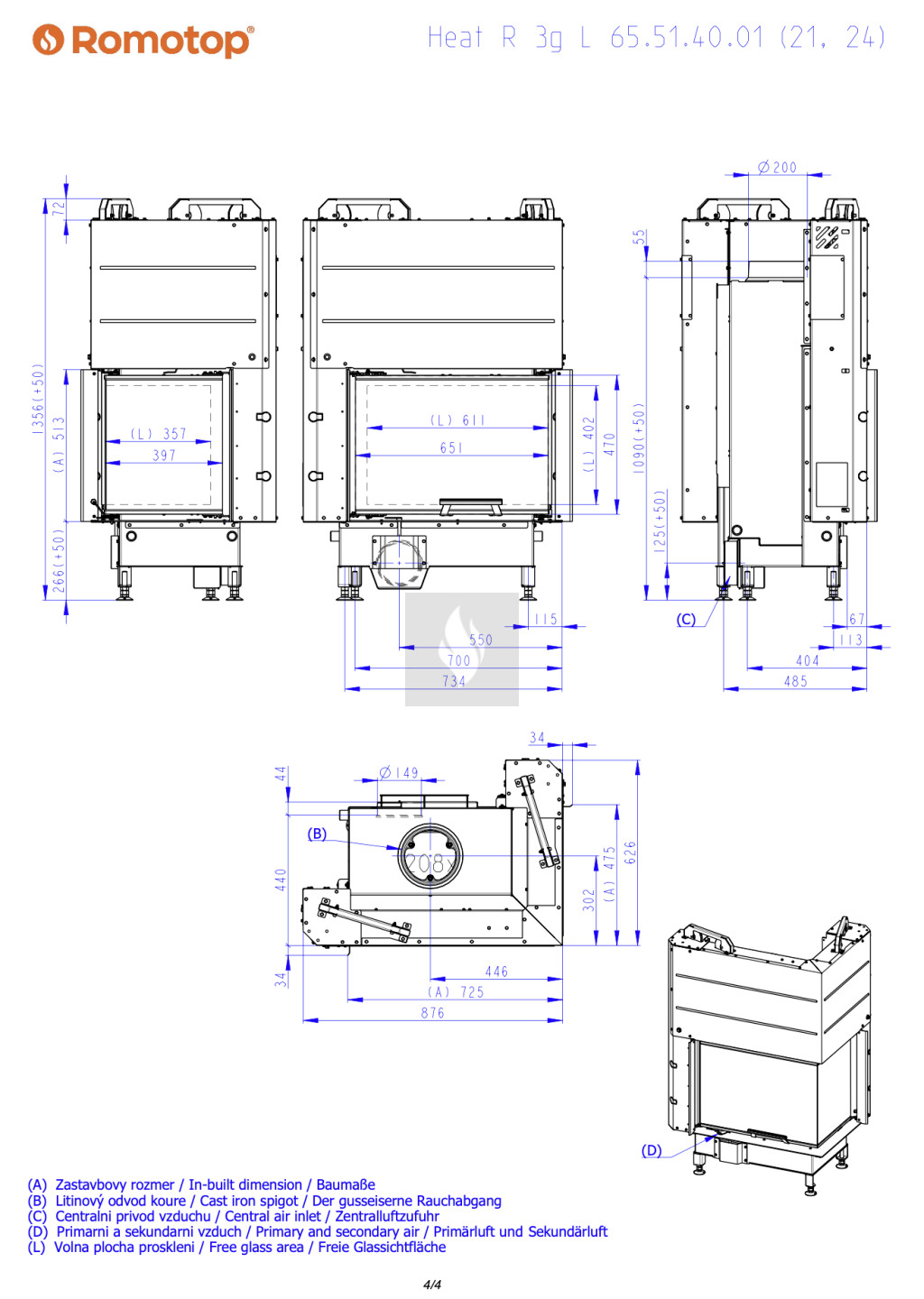 Romotop HEAT R 3G L 65.51.40.24 Légfűtéses kandallóbetét
