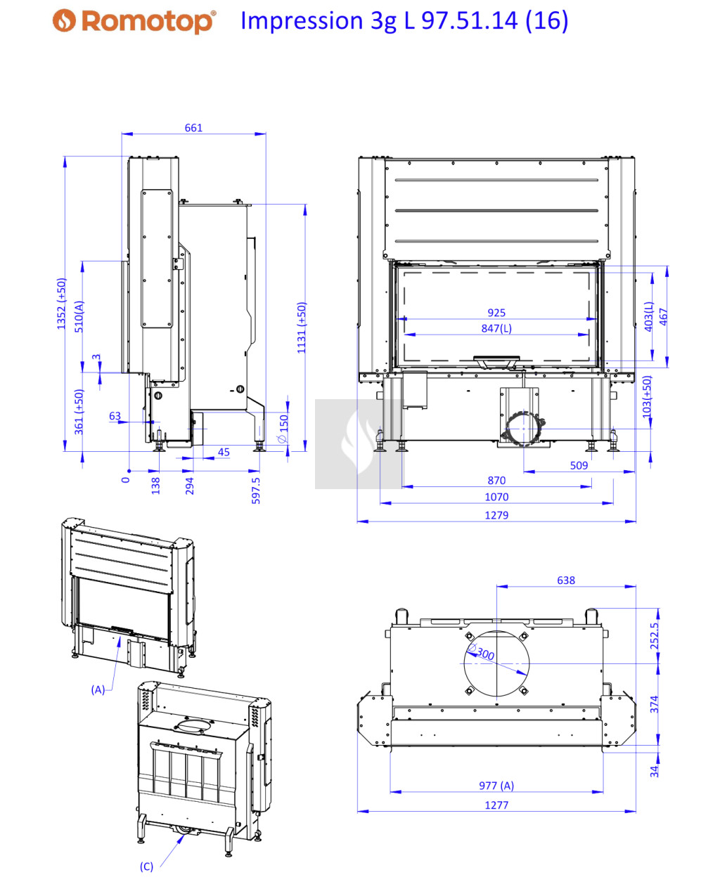 Romotop IMPRESSION 3G L 97.51.16 Légfűtéses kandallóbetét fekete béléssel