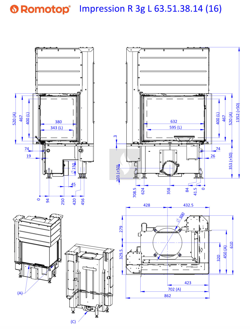 Romotop IMPRESSION R 3G L 63.51.38.16 Légfűtéses kandallóbetét fekete béléssel