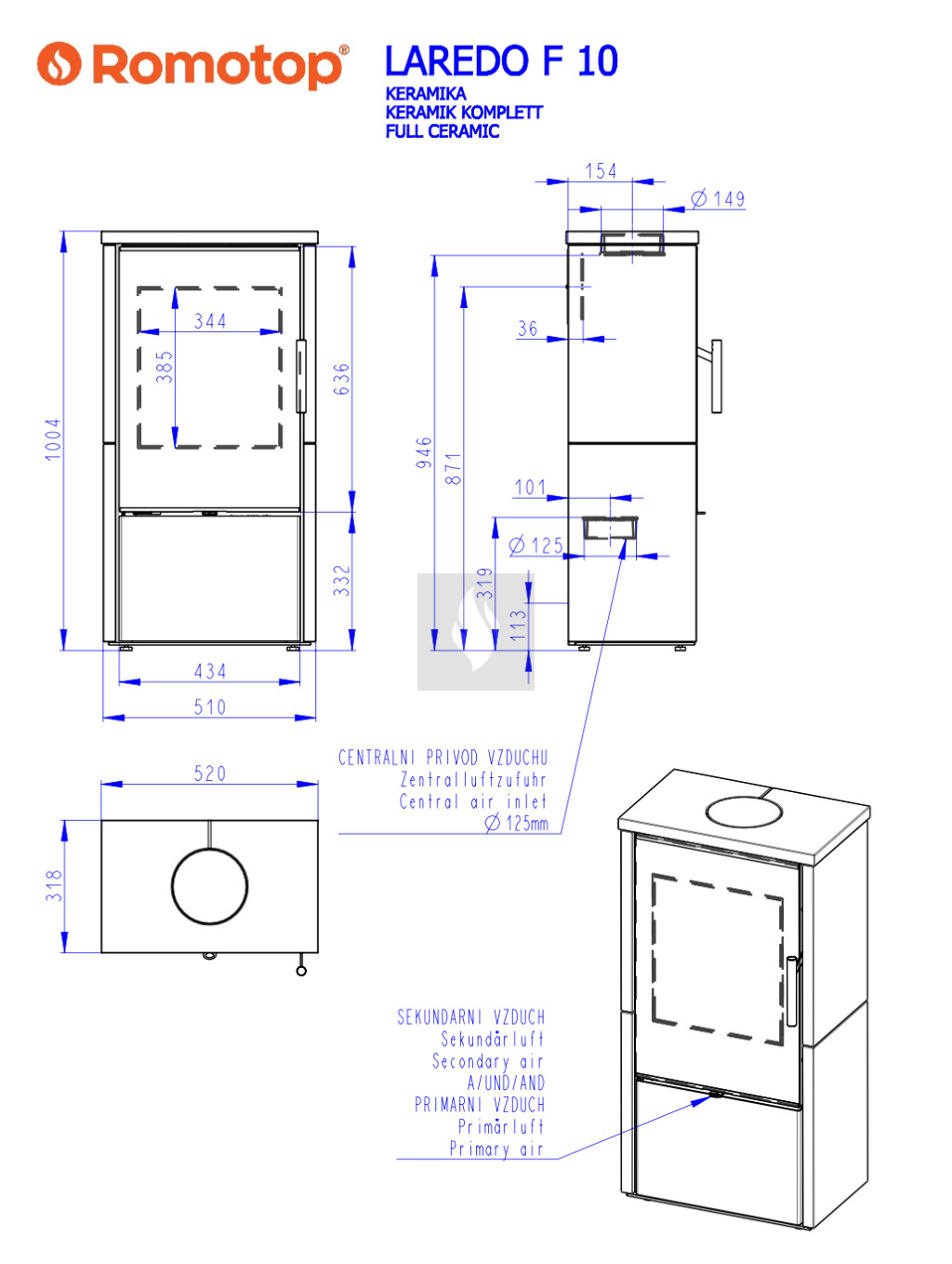 Romotop LAREDO F 10 kerámia Kandallókályha