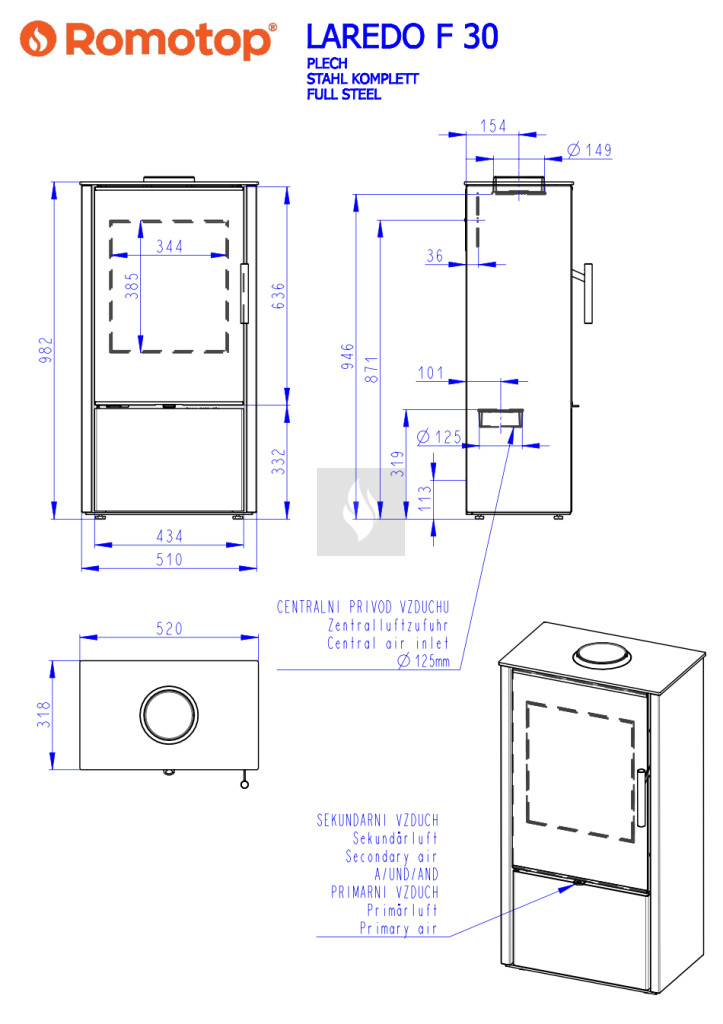 A Romotop kandallókályhák meghatározó jellemzője a letisztult, modern vonalvezetés. A speciális samott anyaggal bélelt égéstér megvédi a kályhát a vetemedéstől, valamint javítja az égési folyamat hatékonyságát. A lángok a világos színű égőtér faláról visszatükröződve teljes fényükben ragyoghatnak, a látvány még akkor is káprázatos, amikor a tűztérben már csak a pislákoló parázs marad. A további fontos jellemzője az irányított elsődleges és másodlagos égés, a légmosó üvegtisztító-rendszer, és a felső füstgáz-kivezetés. Az egyes kandallókályhákban akár 40 cm-es fahasábokat is tüzelhetünk. A Romotop kandallók Csehországban készülnek, megfelelnek a hatályos EU-szabványoknak és követelményeknek. Romotop - teljesítményre tervezve.