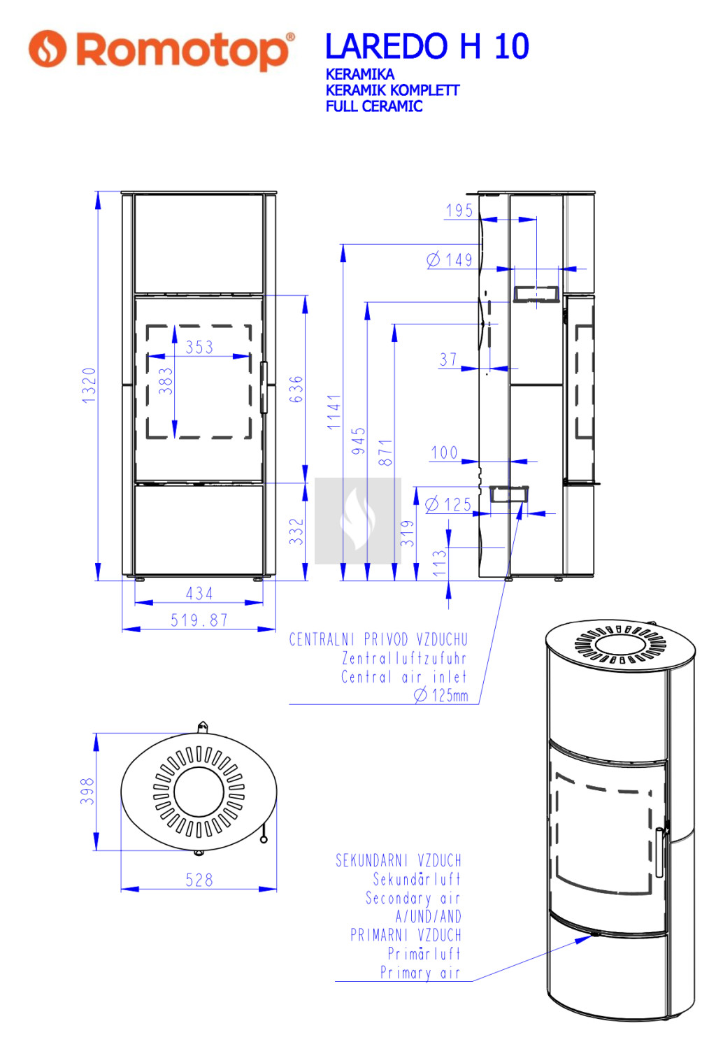 Romotop LAREDO H 10 kerámia Kandallókályha - bővíthető hőtárolóval