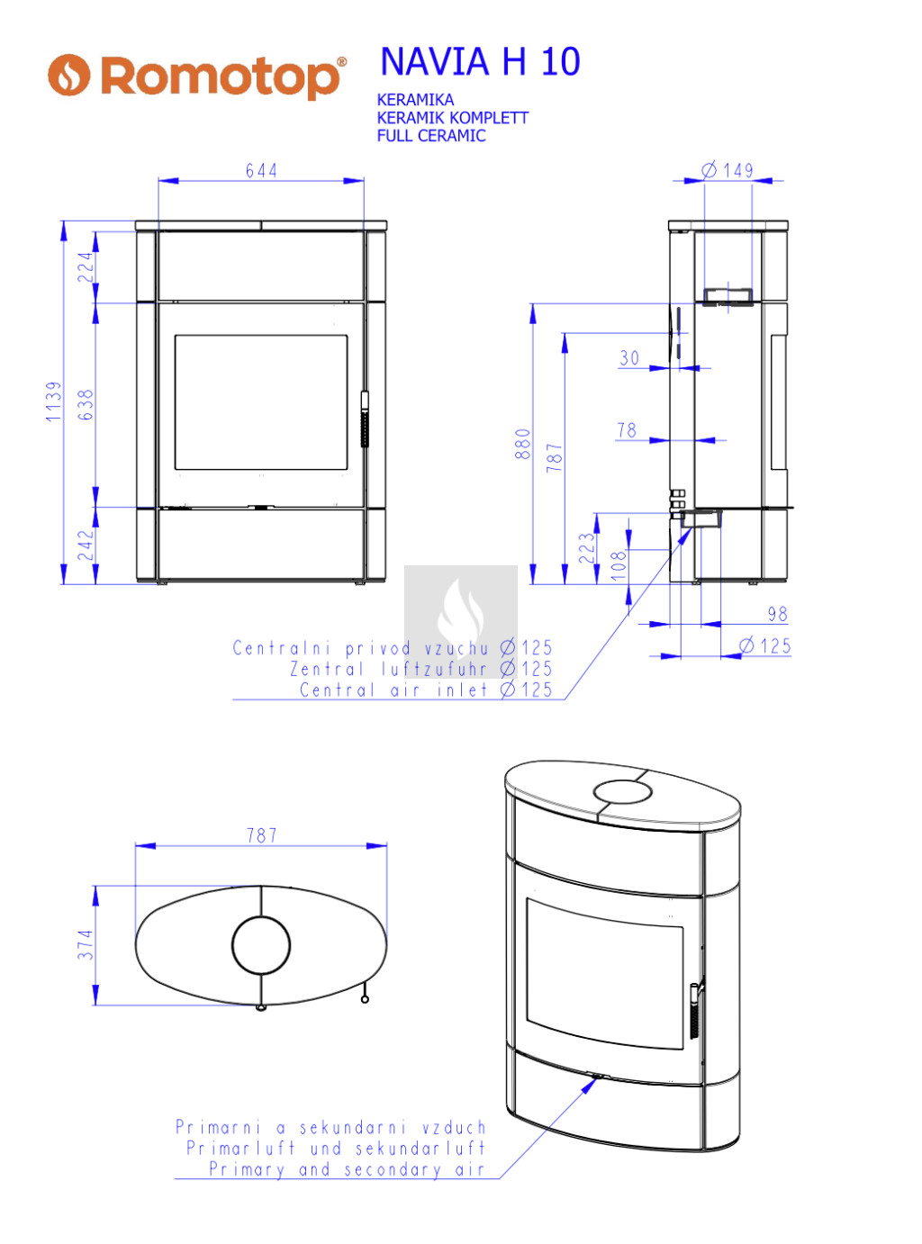 Romotop NAVIA H 10 kerámia Kandallókályha - bővíthető hőtárolóval