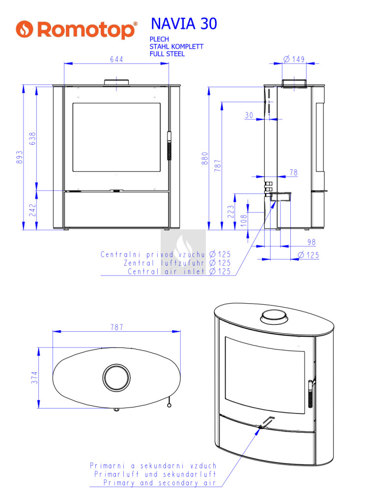 A Romotop kandallókályhák meghatározó jellemzője a letisztult, modern vonalvezetés. A speciális samott anyaggal bélelt égéstér megvédi a kályhát a vetemedéstől, valamint javítja az égési folyamat hatékonyságát. A lángok a világos színű égőtér faláról visszatükröződve teljes fényükben ragyoghatnak, a látvány még akkor is káprázatos, amikor a tűztérben már csak a pislákoló parázs marad. A további fontos jellemzője az irányított elsődleges és másodlagos égés, a légmosó üvegtisztító-rendszer, és a felső füstgáz-kivezetés. Az egyes kandallókályhákban akár 40 cm-es fahasábokat is tüzelhetünk. A Romotop kandallók Csehországban készülnek, megfelelnek a hatályos EU-szabványoknak és követelményeknek. Romotop - teljesítményre tervezve.