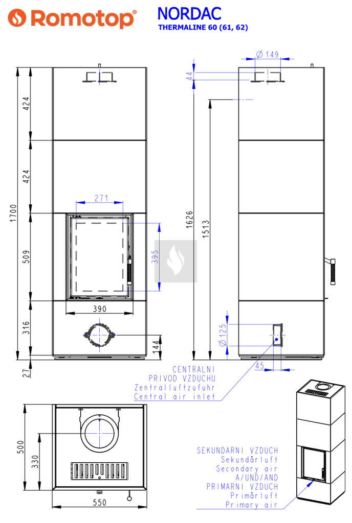 Csakúgy, mint Önnek, a Romotop kandallókályháknak, kandallóbetéteknek és design kandallóknak is levegőre van szükségük a megfelelő működéshez. Az elsődleges levegő segíti a fa meggyulladását, míg a másodlagos levegő tökéletesen tisztán tartja az üveget. A primer és a szekunder levegő ellátása egyetlen karral vezérelhető. Mindent az Ön maximális kényelmére terveztek.