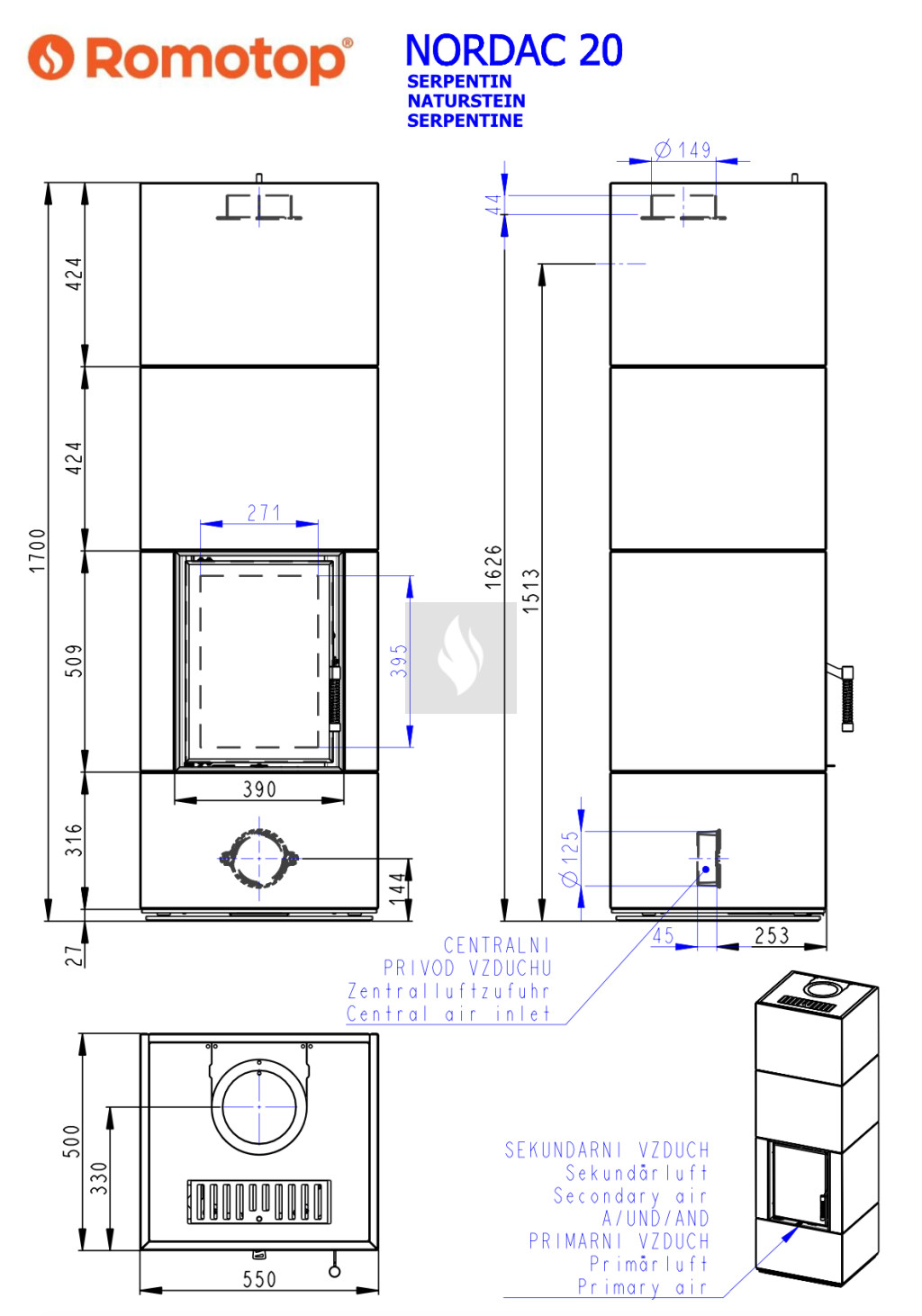 Csakúgy, mint Önnek, a Romotop kandallókályháknak, kandallóbetéteknek és design kandallóknak is levegőre van szükségük a megfelelő működéshez. Az elsődleges levegő segíti a fa meggyulladását, míg a másodlagos levegő tökéletesen tisztán tartja az üveget. A primer és a szekunder levegő ellátása egyetlen karral vezérelhető. Mindent az Ön maximális kényelmére terveztek.