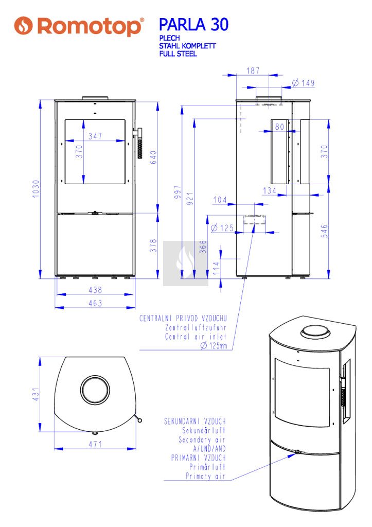 Romotop PARLA 3S lemez Kandallókályha