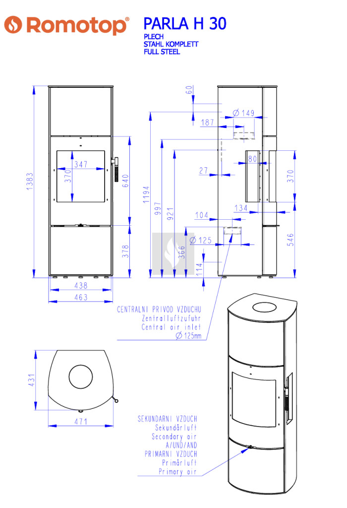 A Romotop kandallókályhák meghatározó jellemzője a letisztult, modern vonalvezetés. A speciális samott anyaggal bélelt égéstér megvédi a kályhát a vetemedéstől, valamint javítja az égési folyamat hatékonyságát. A lángok a világos színű égőtér faláról visszatükröződve teljes fényükben ragyoghatnak, a látvány még akkor is káprázatos, amikor a tűztérben már csak a pislákoló parázs marad. A további fontos jellemzője az irányított elsődleges és másodlagos égés, a légmosó üvegtisztító-rendszer, és a felső füstgáz-kivezetés. Az egyes kandallókályhákban akár 40 cm-es fahasábokat is tüzelhetünk. A Romotop kandallók Csehországban készülnek, megfelelnek a hatályos EU-szabványoknak és követelményeknek. Romotop - teljesítményre tervezve.