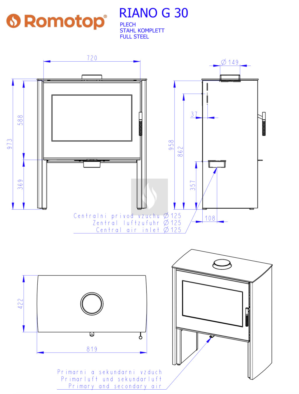 A Romotop kandallókályhák meghatározó jellemzője a letisztult, modern vonalvezetés. A speciális samott anyaggal bélelt égéstér megvédi a kályhát a vetemedéstől, valamint javítja az égési folyamat hatékonyságát. A lángok a világos színű égőtér faláról visszatükröződve teljes fényükben ragyoghatnak, a látvány még akkor is káprázatos, amikor a tűztérben már csak a pislákoló parázs marad. A további fontos jellemzője az irányított elsődleges és másodlagos égés, a légmosó üvegtisztító-rendszer, és a felső füstgáz-kivezetés. Az egyes kandallókályhákban akár 40 cm-es fahasábokat is tüzelhetünk. A Romotop kandallók Csehországban készülnek, megfelelnek a hatályos EU-szabványoknak és követelményeknek. Romotop - teljesítményre tervezve.