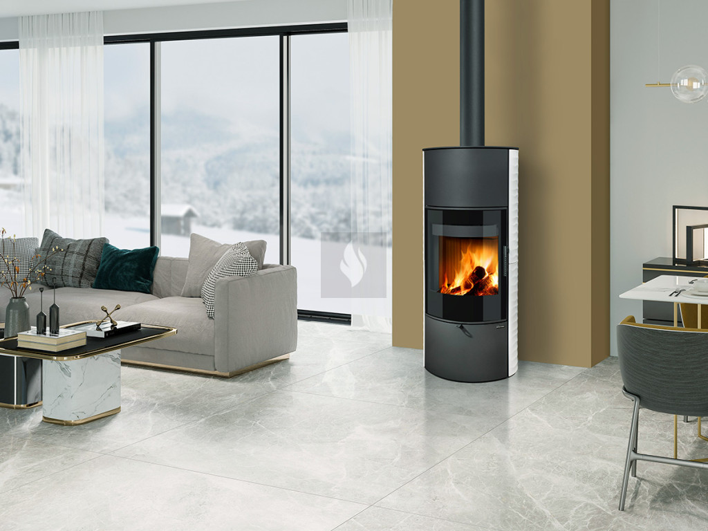 Romotop SONE G H 11 dekorüveg ajtós Hullámos kerámia Kandallókályha - bővíthető hőtárolóval