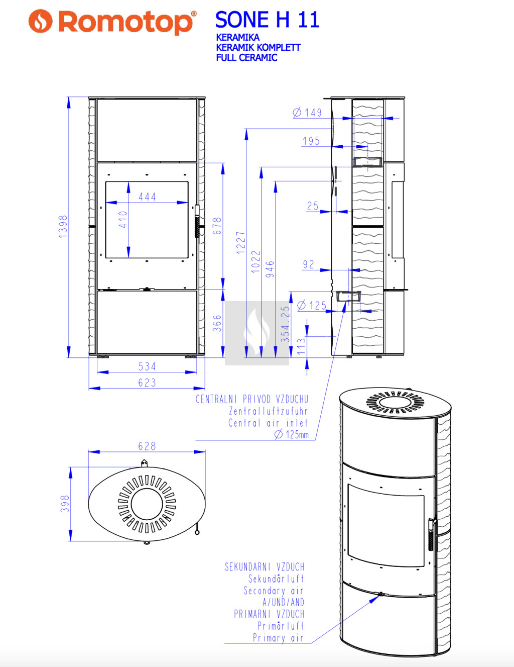 Romotop SONE H 11 Hullámos kerámia Kandallókályha - bővíthető hőtárolóval
