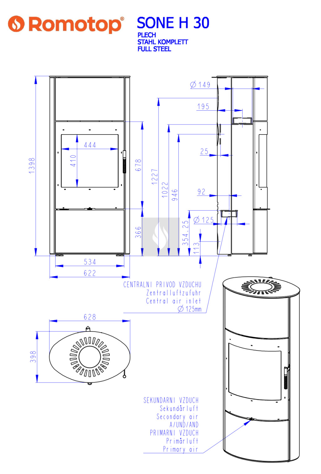 Romotop SONE H 30 Lemez Kandallókályha - bővíthető hőtárolóval