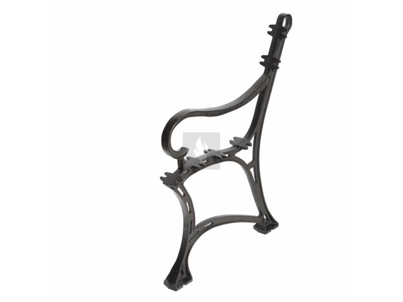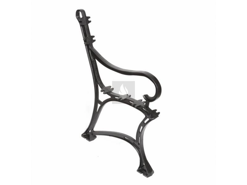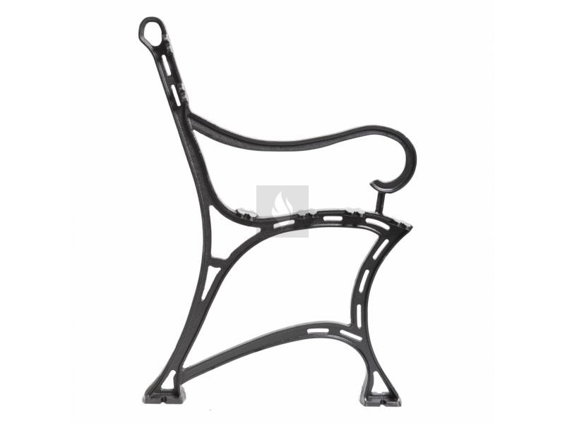 Egy darab öntöttvas padláb Royal padhoz karfával, 75,5 cm magassággal, 39 cm ülésmagassággal, 52 cm szélességgel, 5,8 cm lábszélességgel, 56 cm karfamagassággal és 8,6 kg tömeggel.