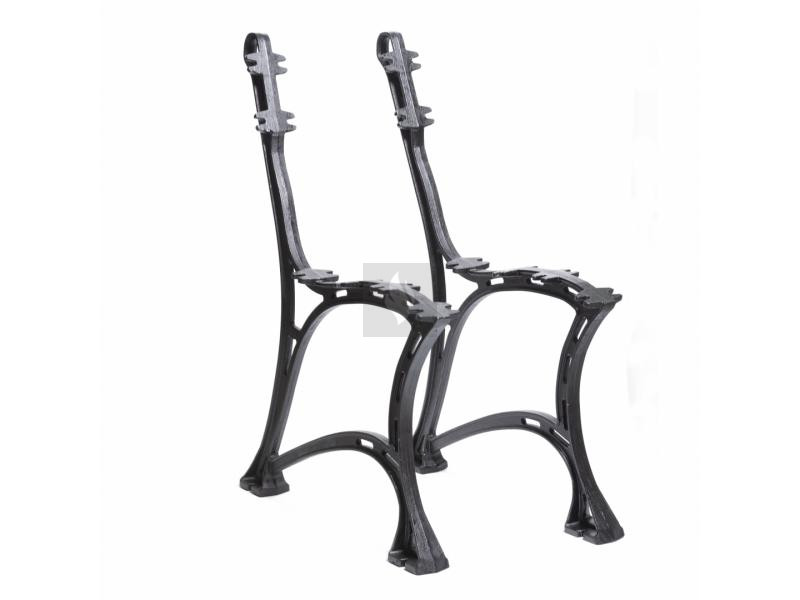 Két darabból álló öntöttvas lábszett Royal padhoz, 75,5 cm magassággal, 39 cm ülésmagassággal, 52 cm szélességgel, 5,8 cm lábszélességgel és 14,4 kg össztömeggel.