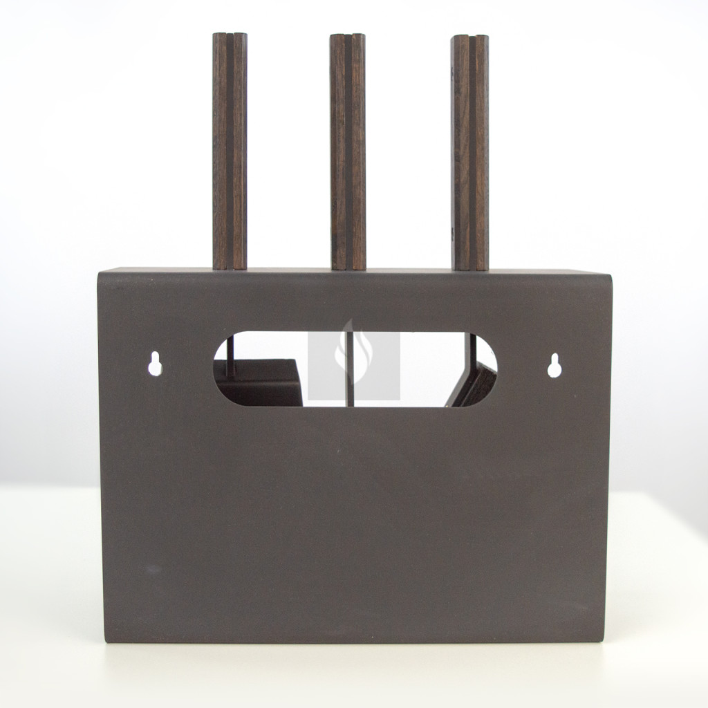 Fekete acélból készült, sötét wenge fogantyúkkal. Tartós és stabil kialakítású, három alap szerszámmal. Modern, letisztult megjelenése jól illik klasszikus és modern terekbe is.